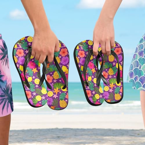 ALAZA Pineapple Tropical Flowers Leaves Flip Flops for Women Fashion Beach Slippers Comfort Mens Flip Flops Non-Slip Rubber Shower Slippers Sandal for Hotel Travel Sport,XS 4