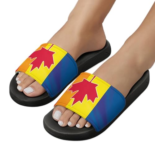 Canada Rainbow Flag House Sandals Non-Slip Bathroom Slippers Beach Summer Shoes for Men Women 7