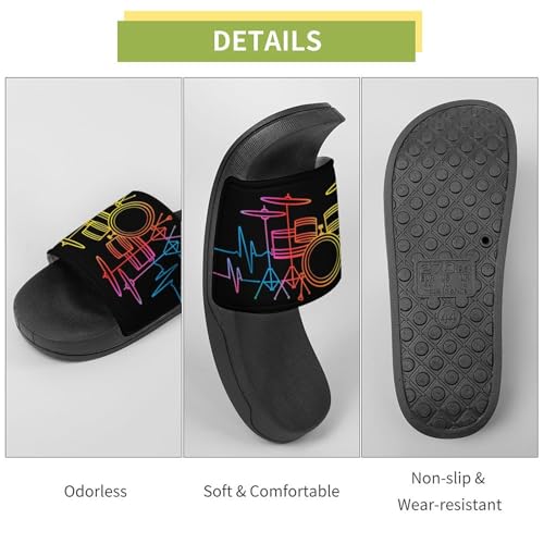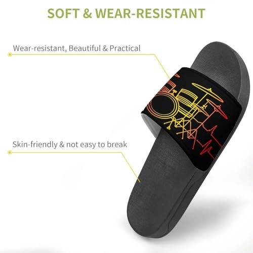HOT ! Vintage Drum Set Heartbeat Drumming Band Unisex Shower Shoes House Slippers Non-Slip Indoor Bathroom Shoes for Pool Beach 46 (287mm)
