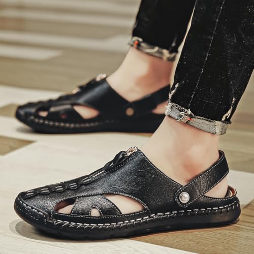 QUF Men's Leather Sandals Premium Genuine Leather Sandals Hand Sewn Cowhide Design Comfortable Non-Slip Trendy Casual Durable Shoes Perfect for Summer Walking & Beach 6