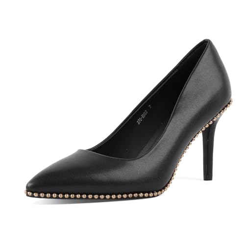 More information about LingxiaUne Women’s Black Pointed - Toe Stiletto Heels – Elegant Gold Studs Decorated High Heel Dress Shoes for Office & Formal Occasions