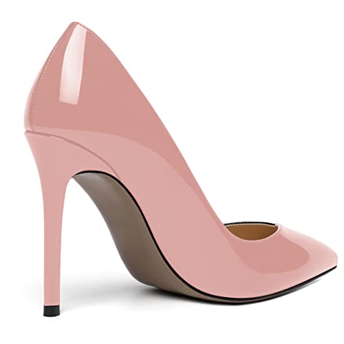 SHOWFOREST Women's Patent Slip On Pointed Toe Solid Dating Sexy Slim Stiletto High Heel Pumps Shoes 4 Inch 4
