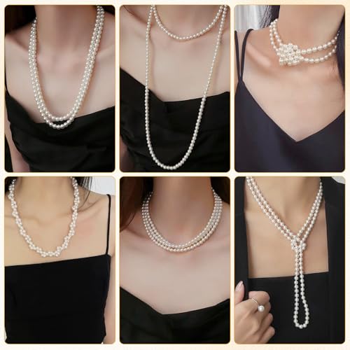 HOT ! 59" Long Pearl Necklace, Faux Long Pearl Necklaces for Women, Vintage Elegant Long Pearls, Pearl Necklace Long for Wedding Party 1920s Gatsby Costume Jewelry
