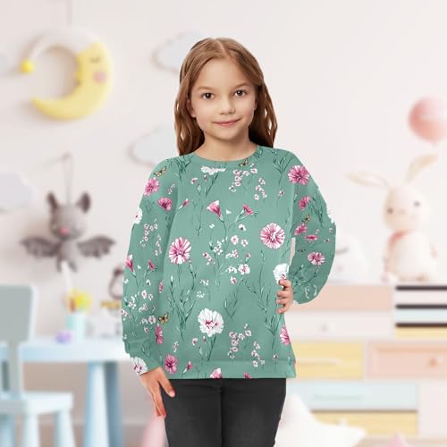 JUNZAN Cartoon Dianthus Sage Green Little Kids Hooded Sweatshirt Crewneck Sweatshirt With Hoodie Camping 4T 6
