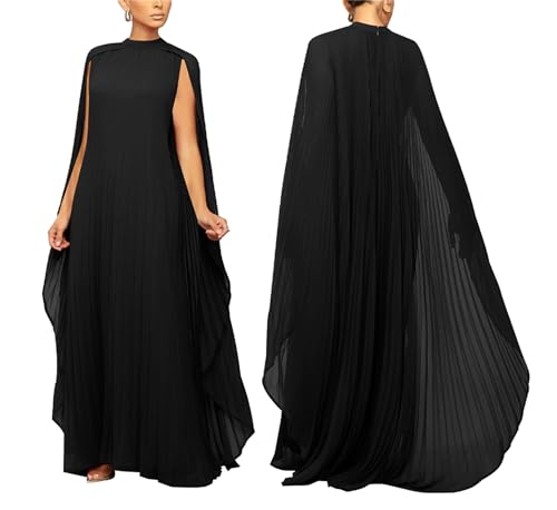 • Features: Chiffon pleated long dress, cape sleeve maxi dress, solid color, round neck, elegant flowy long dress, 2023 fall formal dress, evening party dress.