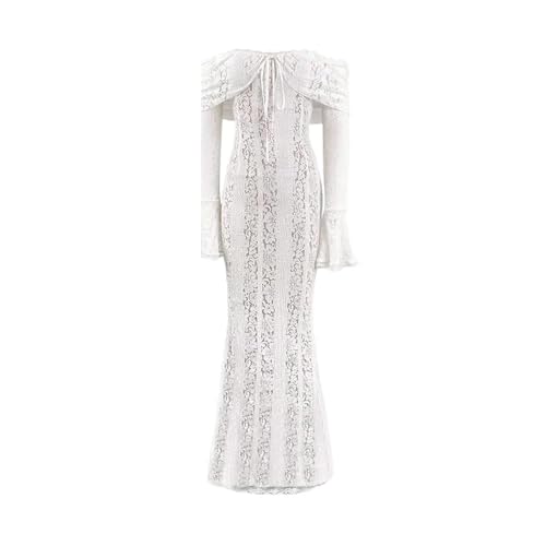 More information about Autumn Elegant Off Shoulder Lace Maxi Dress White Women Long Sleeve Evening Party Dresses for Date Nights
