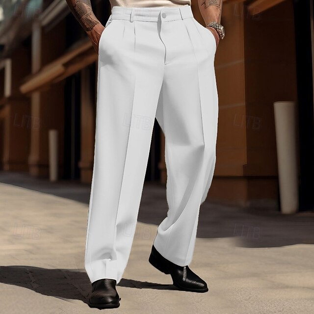 More information about Men's Dress Pants Trousers Casual Pants Suit Pants Buttons Front Pocket Straight Leg Plain Comfort Business Daily Holiday Fashion Chic & Modern Black White