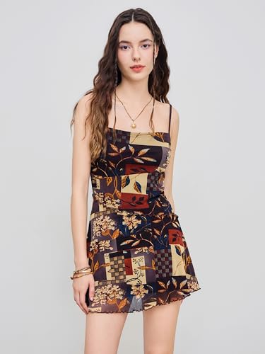 CIDER Women Western Mini Dress Floral Spaghetti Strap Cami Short Vintage Short Sundress Summer Boho Dresses 5