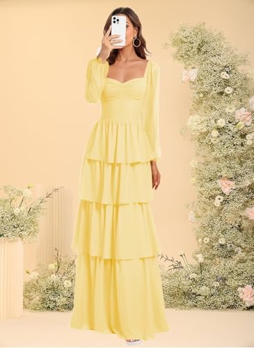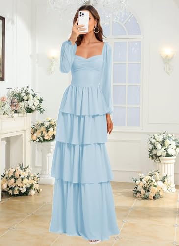 More information about Dessiny Long Sleeves Tiered Bridesmaid Dresses 2025 for Women Flowy Chiffon Formal Evening Dress DE513