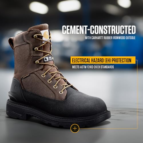 HOT ! Carhartt Ironwood Waterproof Insulated Safety Toe Work Boots for Men - 8-inch Reinforced Leather and Carstrong Fabric, with Slip-Resistant Outsoles