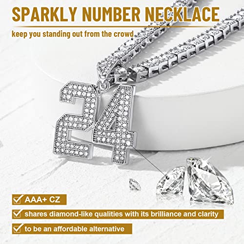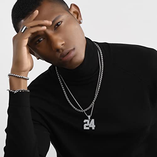HOT ! KeyStyle Number Necklaces For Men, Bling Numbers Chain Necklace Hip Hop Simulated Diamond Pendant with Tennis Chain Spiga Chains