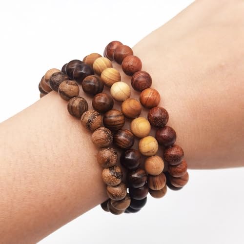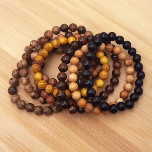 8 Pieces Natural Wood Elastic Beaded Bracelet for Men and Women 3