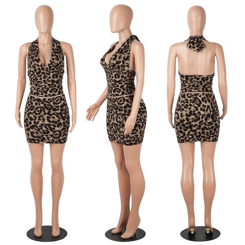 PORRCEY Women Sexy Casual 2 Piece Leopard Cheetah Print Party Club Bodycon Mini Dress 2
