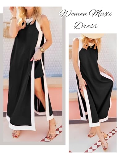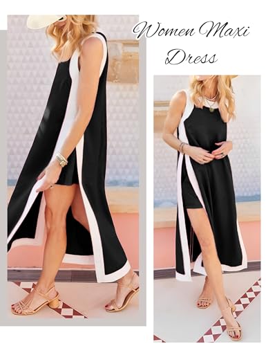 EsheSy Womens 2 Piece Sets Maxi Dress Matching Shorts Sleeveless Color Block Loose Boho Dress Outfits with Pockets 2