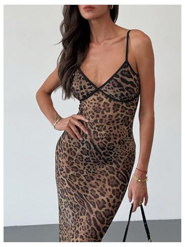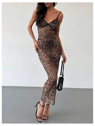 HOT ! Women's Sexy Cheetah Sheer Dress Y2K Mesh Leopard See Through Bodycon Maxi Dress Going Out Date Party Rave Clubwear