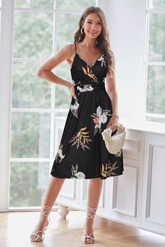 OUGES Women's Summer Spaghetti Strap V-Neck Floral Short Party Dress with Pockets 1