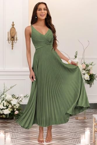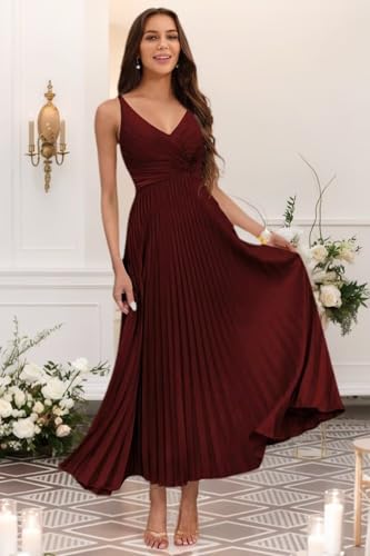 Women's V Neck Pleated Satin Bridesmaid Dresses Long Maxi Formal Evening Dress VS219 1