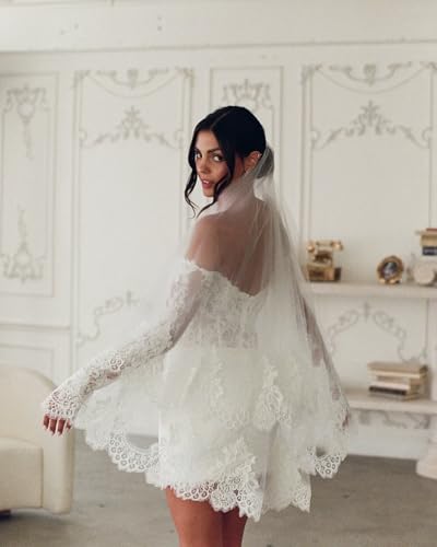 • Feature: This lace mini has bodycon for a secure fit, a romantic off-the-shoulder neckline, and a sheer lace applique bodice. Perfect for the confident bride who wants a touch of elegance and sexiness