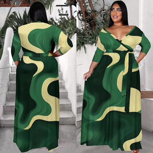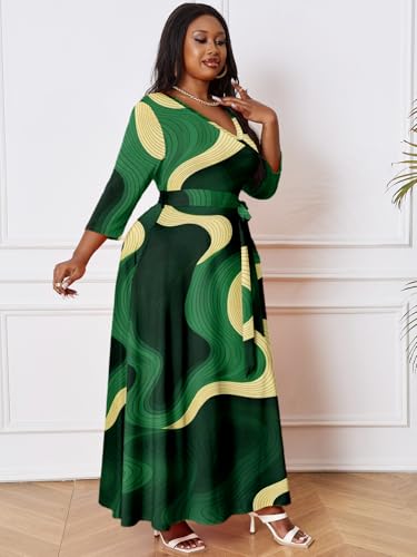 • 【Design】Deep V-neck and empire waist maxi dress comes with a matching belt to accentuate your curves. The 3/4-sleeve maxi silhouette is specially tailored for busty and plus-size figures, making it ideal for weddings and various special occasions.