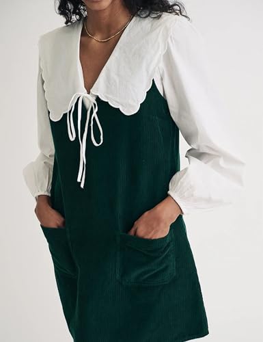Hooever Women Corduroy Overall Dress V Neck A Line Skirtall Jumper Mini Dress Pinafore with Pockets 5