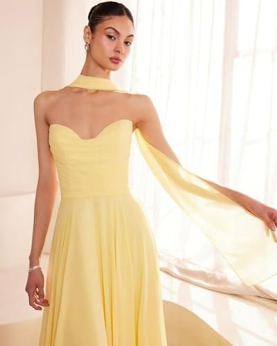 More information about Women's Flowy Chiffon Bridesmaid Scarf Dresses 2025 Strapless Pleated Aline Sweetheart Formal Evening Party Dress DE466