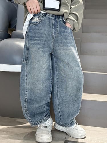 More information about Boys Casual Pants Comfortable Denim Trousers Stylish Loose Fit Elastic Waist Streetwear for Kids Age 4-14