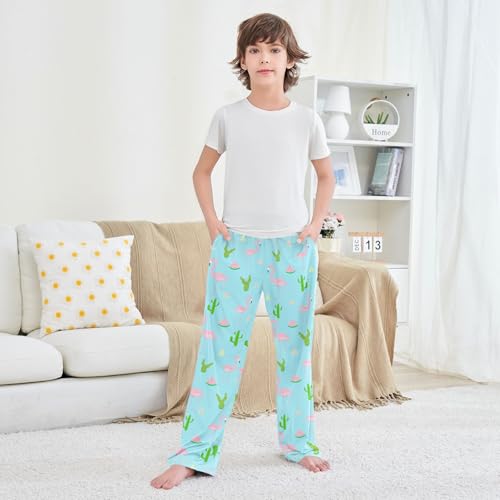 Flamingo Cactus Watermelon Boys Long Pants Soft Trousers Elastic Waist Kids Lounge Bottoms with Pockets S-XL 4