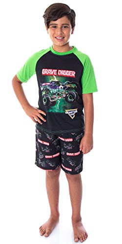 INTIMO Monster Jam Boys' Grave Digger Monster Truck Shirt And Shorts 2 Piece Pajama Set 6