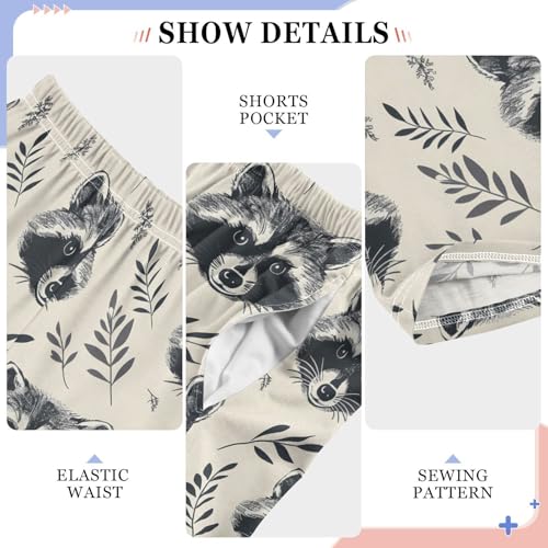 Pajama Pants Raccoon Leaves Long Sleep Pants Lounge Bottoms 4