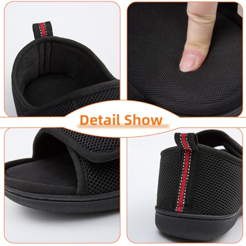 Women Men's Open Toe Diabetic Recovery Slippers Adjustable Slipper with Anti-Slip Indoor Outdoor Sole Grey Black Beige Color US6-US13 6