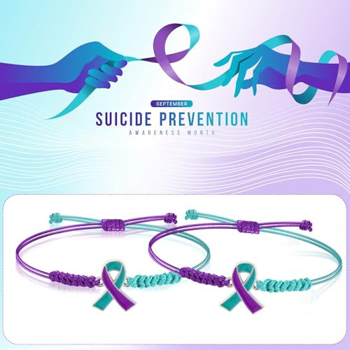 Sasylvia 20/100/150 Pcs Suicide Prevention Awareness Bracelets Adjustable Cord Purple Teal Ribbon Braided Bracelets Inspirational Suicide Prevention Gifts for Women Men Jewelry Accessories 4