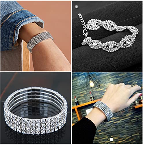 • Brilliant Material - The sparkly rhinestone bracelets are made of high quality eco-friendly material paved with shiny clear rhinestone, hypoallergenic and lightweight, no nickel, lead or cadmium, are not easy to damage or fade, give you a long-lasting finish.