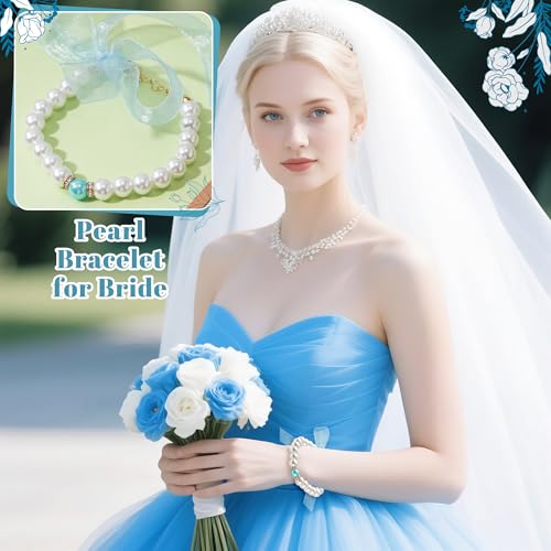 • Blue Bride Pearl Bracelet Set: This exquisite set includes a 1pc pearl bracelet with a blue ribbon bow, 1pc kraft paper gift card, and 1pc blue velvet jewelry bag. Each item is carefully curated to enhance the elegance of the bride's ensemble on her special day.