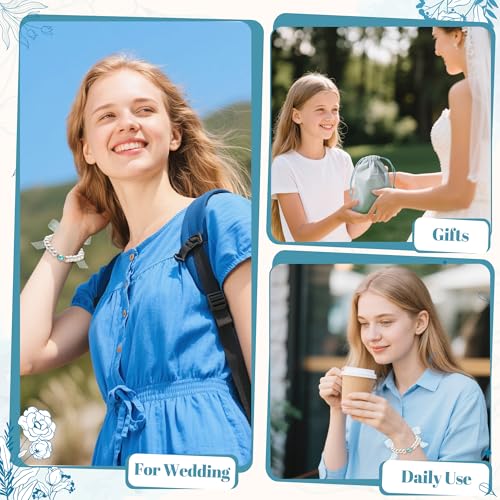• Premium Materials: Made with high quality 8mm pearls, the bracelet promises durability and a lustrous finish. The ribbon bow is attached to the bracelet for a charming touch, and the velvet pouch bag provides a luxurious storage option. The light blue velvet pouch bag and the kraft paper card, which can be given as a gift.