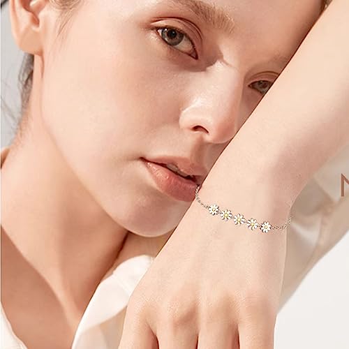 Palpitate Daisy Bracelet Sterling Silver Dainty Jewelry Non Tarnish for Women Mom Mothers Her Daisy Gift on Birthday Anniversary Christmas 6
