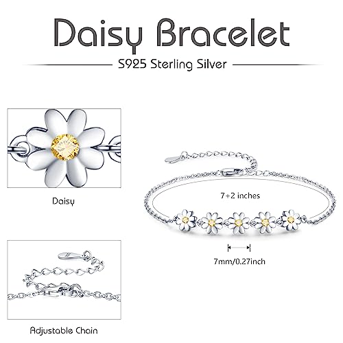 Palpitate Daisy Bracelet Sterling Silver Dainty Jewelry Non Tarnish for Women Mom Mothers Her Daisy Gift on Birthday Anniversary Christmas 7