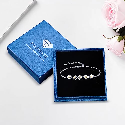 Palpitate Daisy Bracelet Sterling Silver Dainty Jewelry Non Tarnish for Women Mom Mothers Her Daisy Gift on Birthday Anniversary Christmas 2