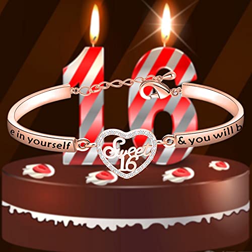 HOT ! FUSTMW Happy 16th Birthday Gifts Sweet 16 Bracelet Sixteen Birthday Sweet 16 Jewelry Gifts for Daughter Bracelet
