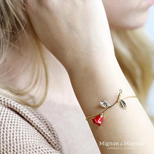 MignonandMignon 14k Gold Rose Gold Silver Plated Rose Bracelet Rose Pendant Bracelet Beauty and The Beast Bracelet Bridesmaid Gift for Mom - 3ERBR 1