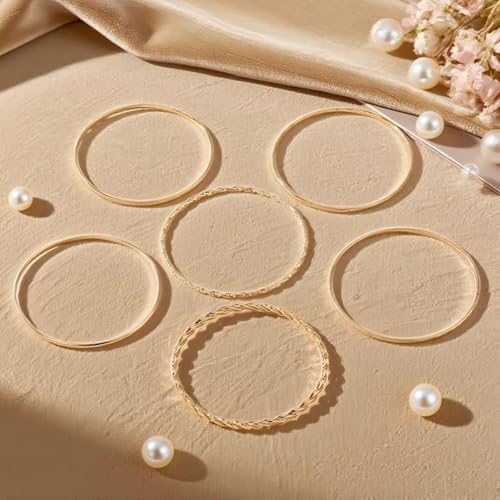 Gold Bangle Bracelet, 6 Pcs Gold Plated Dainty Layered Chain, 14K Layer Stackable Cuff Bracelet Set for Women (Gold) 5