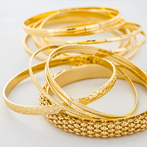 HOT ! And Lovely Plus Size 14K Gold or Rhodium Plated Multi Texture Bangle Bracelet - Set of 15