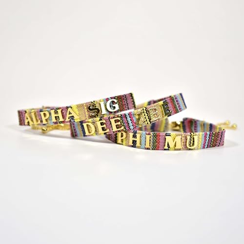 HOT ! Sorority Shop Alpha Gamma Delta Bracelet — Multi-Color Woven Bracelet with Gold-plated Sorority Nickname and Adjustable Clasp