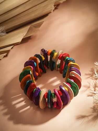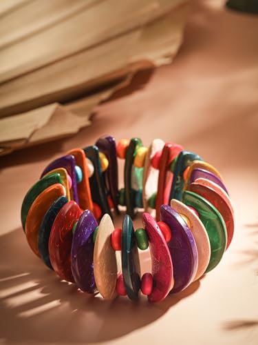MINACHI Boho Chunky Colorful Wooden Bead Stretch Bracelet, Handmade Bohemian Statement Jewelry For Women 7