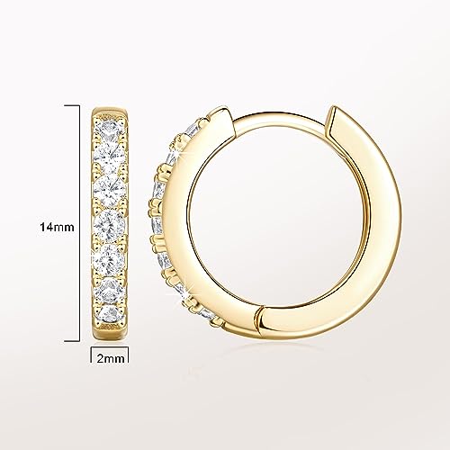 NEARLAND 14K Gold Hoop Earrings for Women 14K Gold Earrings Hypoallergenic Lightweight Small Hoop Earring for Womens with Round Cubic Zirconia Huggie Hoops Earring for Women 12/14/16/20/25/30mm 1