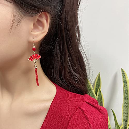 More information about Red Fan Tassel Earrings Chinese for Women Japanese Ethnic Drop Cloud Aesthetic Hanging Dangle Jewelry Stud Earrings