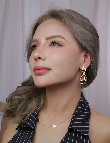 FAN&LOUIS Clip On Dangle Earrings Women,14K Gold Statement Dangle Earrings Clips Lightweight Hammered Drop Dangle Clip-on Earrings for Women 2026 2