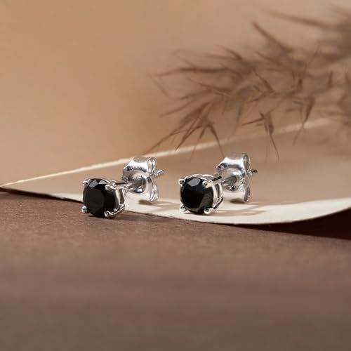 Dewberry 0.30 to 2.00 Ct Round Cut Black Diamond Stud Earrings for Women's Gift | 4 Prong Set Push Back Solitaire Stud | 14K White or Yellow Gold Plated | 925 Sterling Silver Earrings for Men's 4