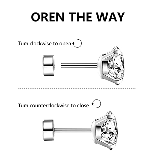• Flatback Stud Earrings: Flatback design protects ears from painful pokes, can also be worn while sleeping; Classic barbell design with shiny cubic zirconia well inlaid, simple and delicate. Excellent internal screw thread, easily and firmly to screw on and screw off.