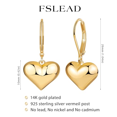 • Hypoallergenic Gold Heart Earrings: Length:1.04" Designed for sensitive ears, the gold heart earrings are no nickel,no lead, and no cadmium. The lever back earrings ensures comfortable,closure stays in place all day with no irritation