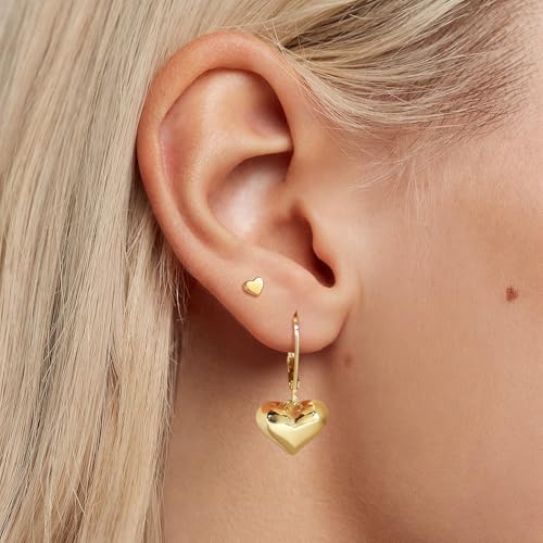 • Dainty Gold Heart Earrings: The trendy, dainty puffed heart earrings offer a delicate and eye catching look.The gold puffed heart earring adds a touch of romance to date nights, weddings, or everyday elegance